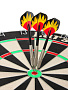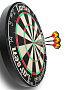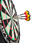 толщина - 3,8 см. Тонкий разделитель секторов – как лезвие, врезан в поверхность мишени, что снижает риск отскока, так как дротики реже попадают по металлическому разделителю между секторами. Центр мишени закреплен без использования скоб. Вращающееся кольцо нумерации секторов, что позволяет менять сектора по мере износа. Мишень профессионального уровня, соответствующая требованиям проведения соревнований высокого уровня |