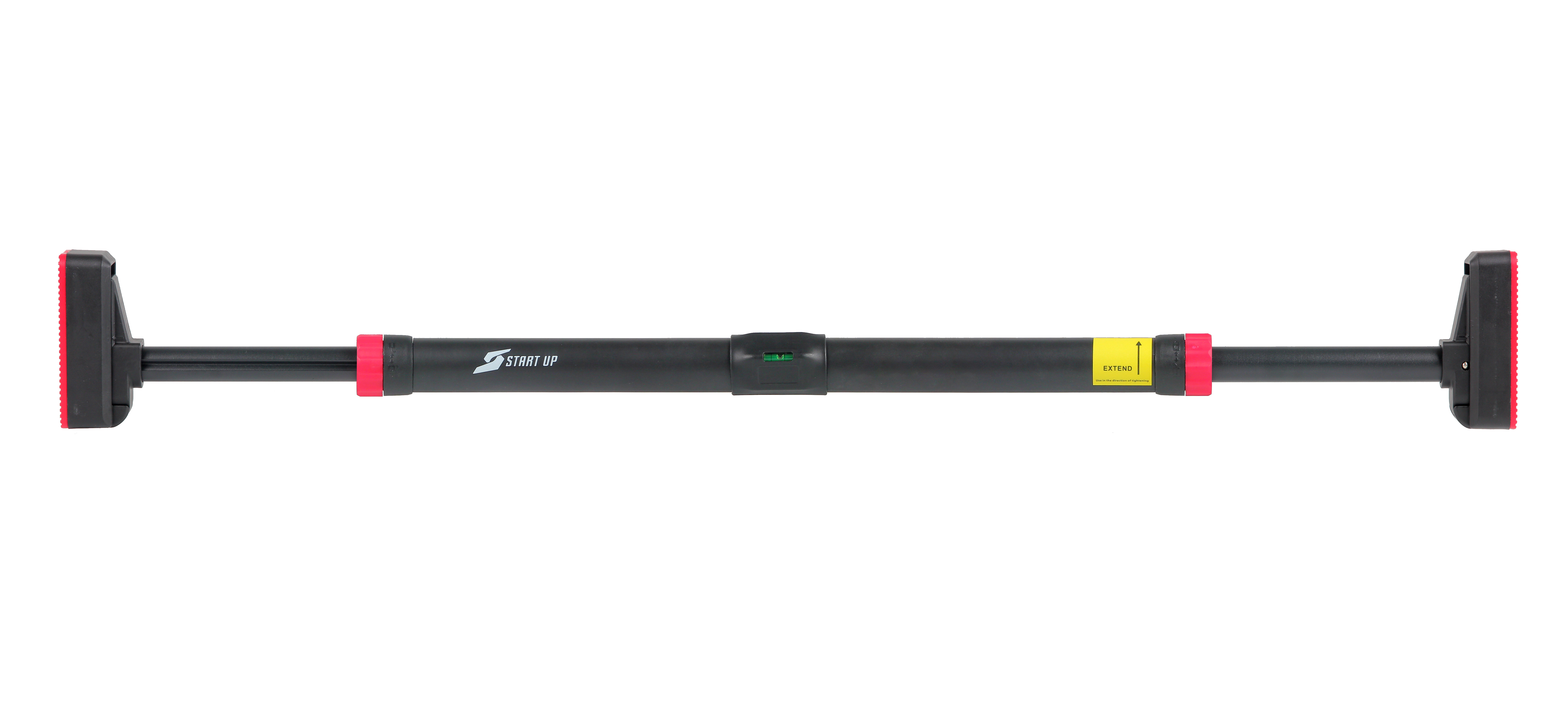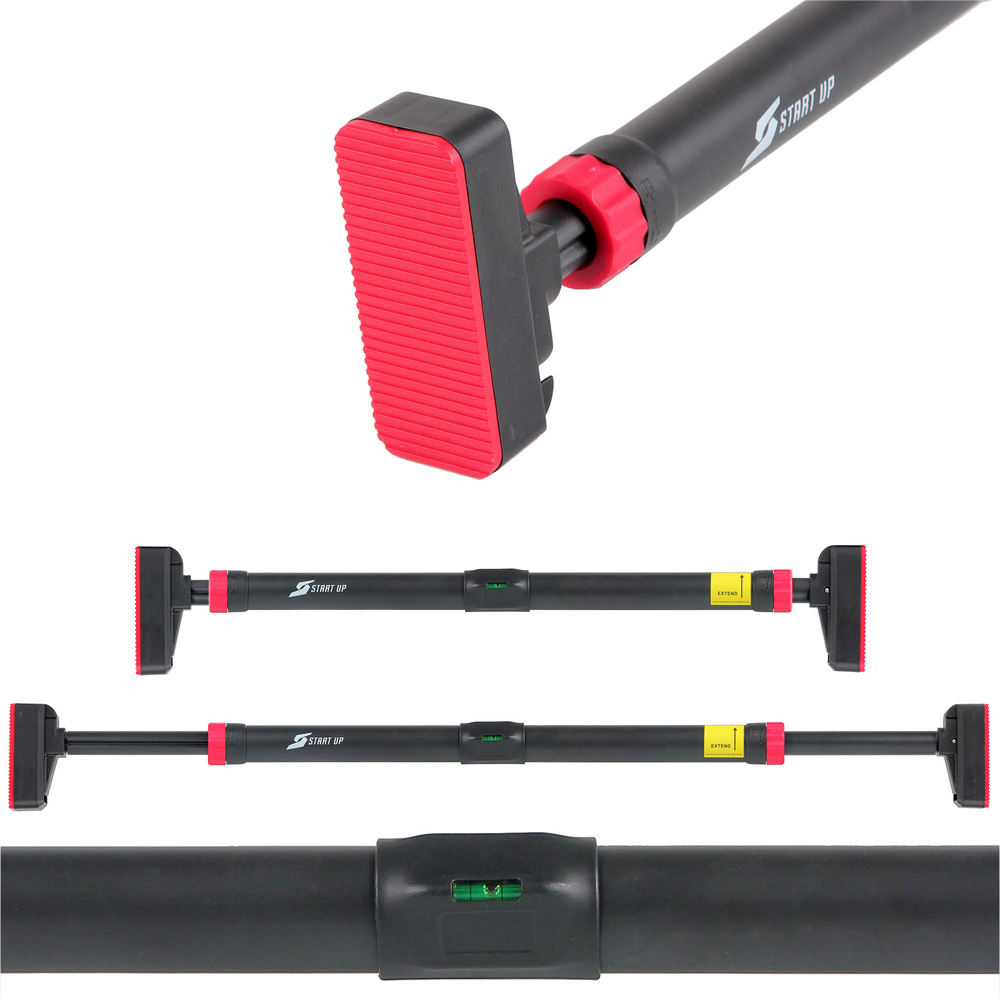толщина уплотнительной резинки на упоре: 5 мм Диаметр распорной трубки: 24 мм Фиксация установленной длины специальными замками, установленными на обоих концах турника Встроенный уровень по центру турника для правильного горизонтального положения Длина хвата до замков: 49,5 см Длина замков: 37,5 мм Диаметр замков: 42 мм Расстояние от упоров до замков в сложенном положении: 31,5 мм Жесткость оплетки хвата: 60 единиц (по Шору А) Необходимо: 1) соблюдать правильность установки турника согласно зеленых указателей на упорах турника; 2) соблюдать безопасное положение турника согласно указательных рисок на упорах. Данная модель турника не рассчитана на сильные раскачивания и выполнение опасных трюков. Для безопасного использования турника рекомендуется использовать гимнастические маты под ним |