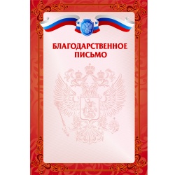 Благодарственное письмо РФ красное