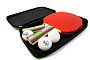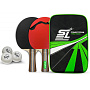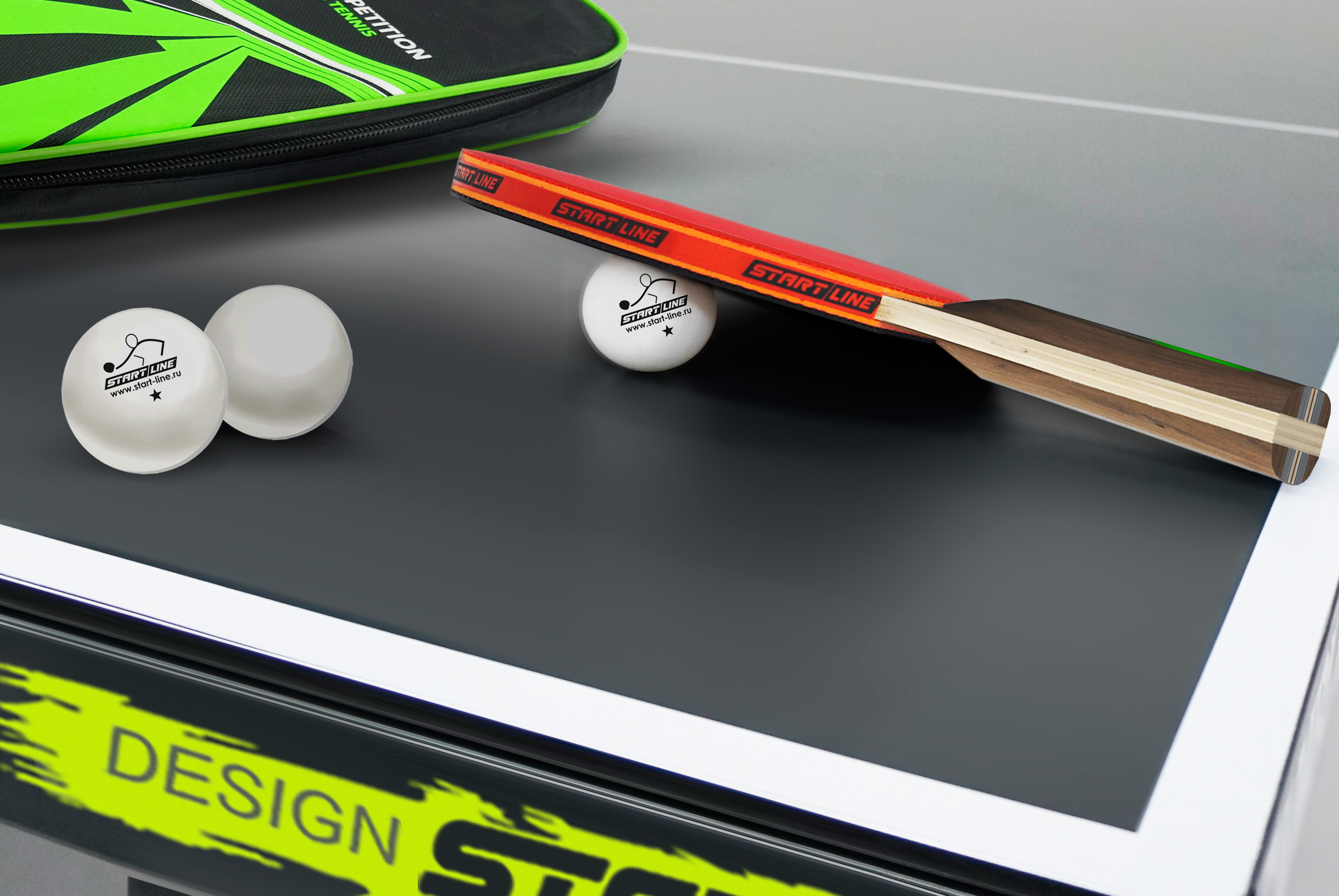 Мячи выполнены из улучшенного пластика Plastic Ball. Основание ракеток выполнено из 7 слоев тополя — специально подобранная порода дерева. Толщина основания составляет 6,8 мм. Ракетки оснащены спортивной твердой губкой толщиной 2,2 мм, шипами внутрь. |